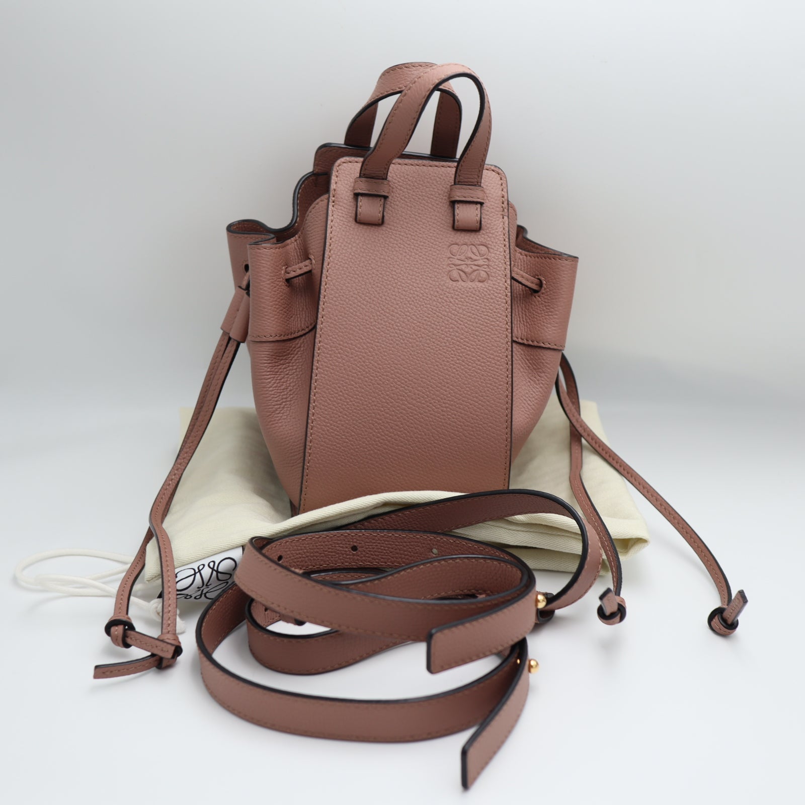 Pre-Owned #71117 Loewe Hammock mini Drawstring bag 2way Crossbody Hand Bag pink beige A538V07X10
