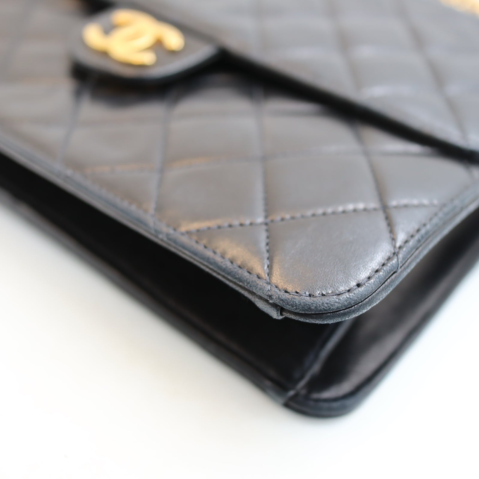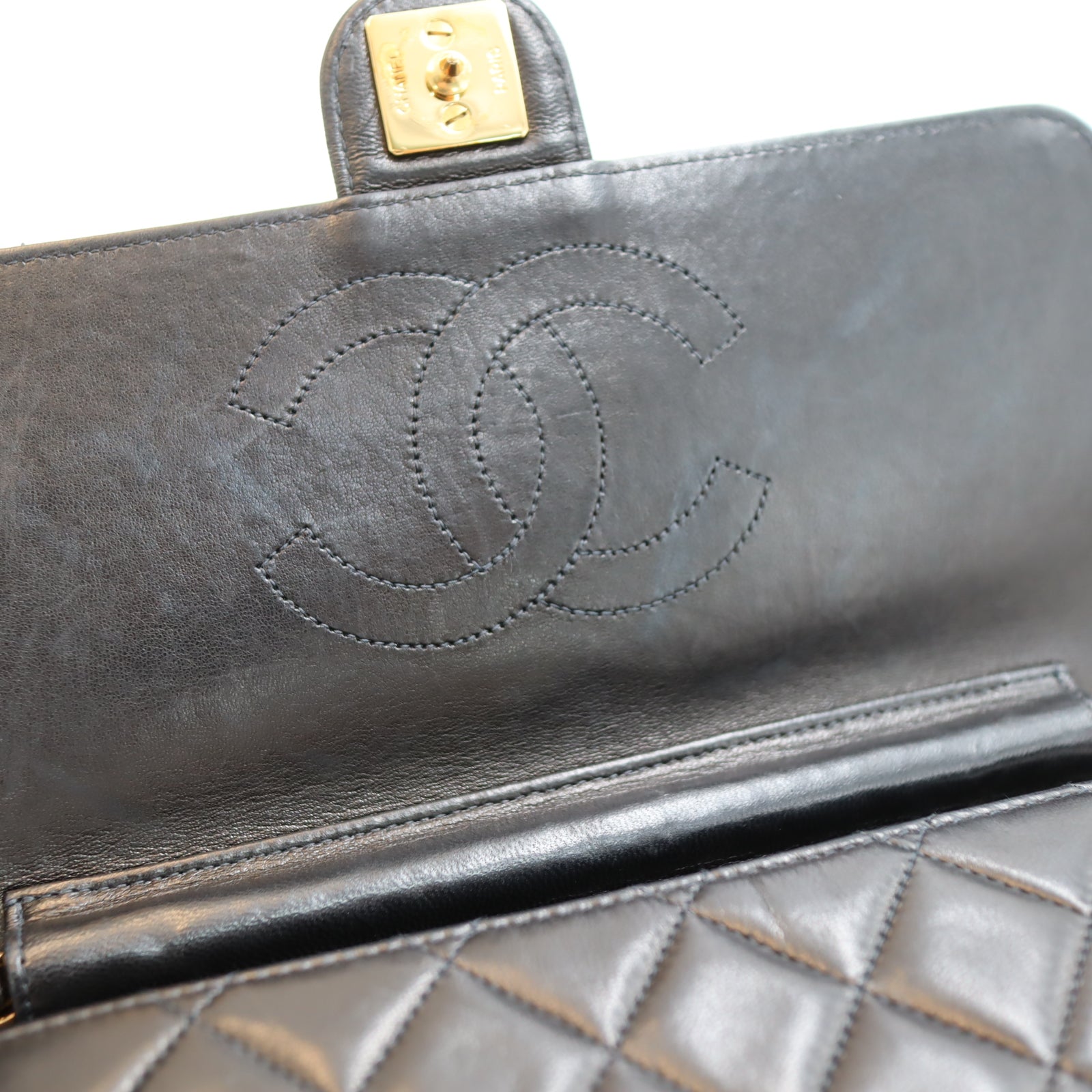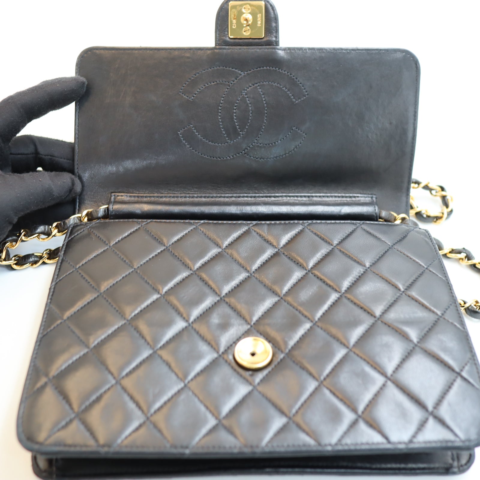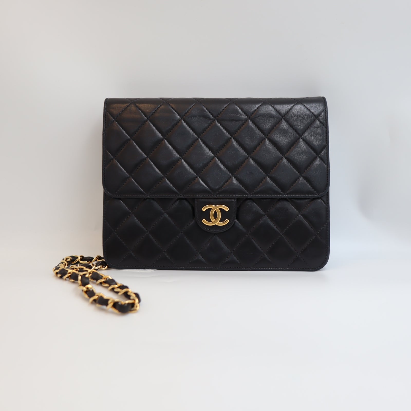Pre-owned #90152 CHANEL Matelassé Chain Shoulder Bag | Push-Lock | Lambskin | Black | 5 Series (1997–1999) | Gold Hardware | Vintage