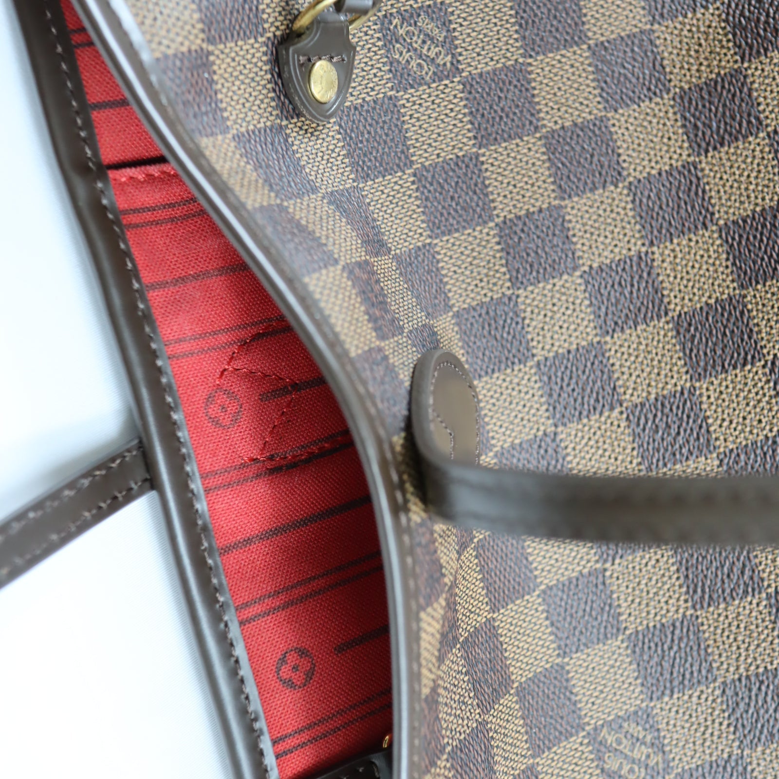 Pre-Owned #BPALAN06161 Louis Vuitton Damier Ebene Neverfull MM Tote Bag N51105