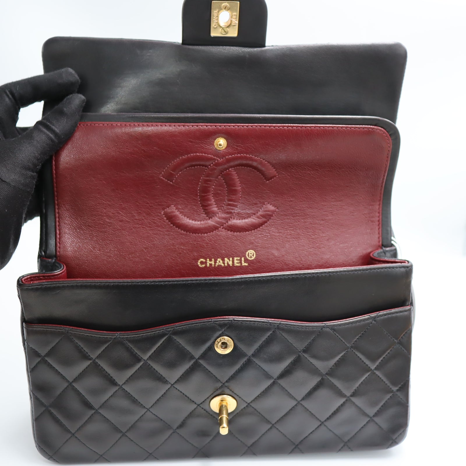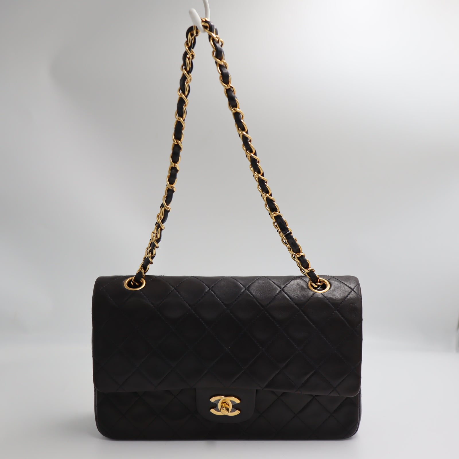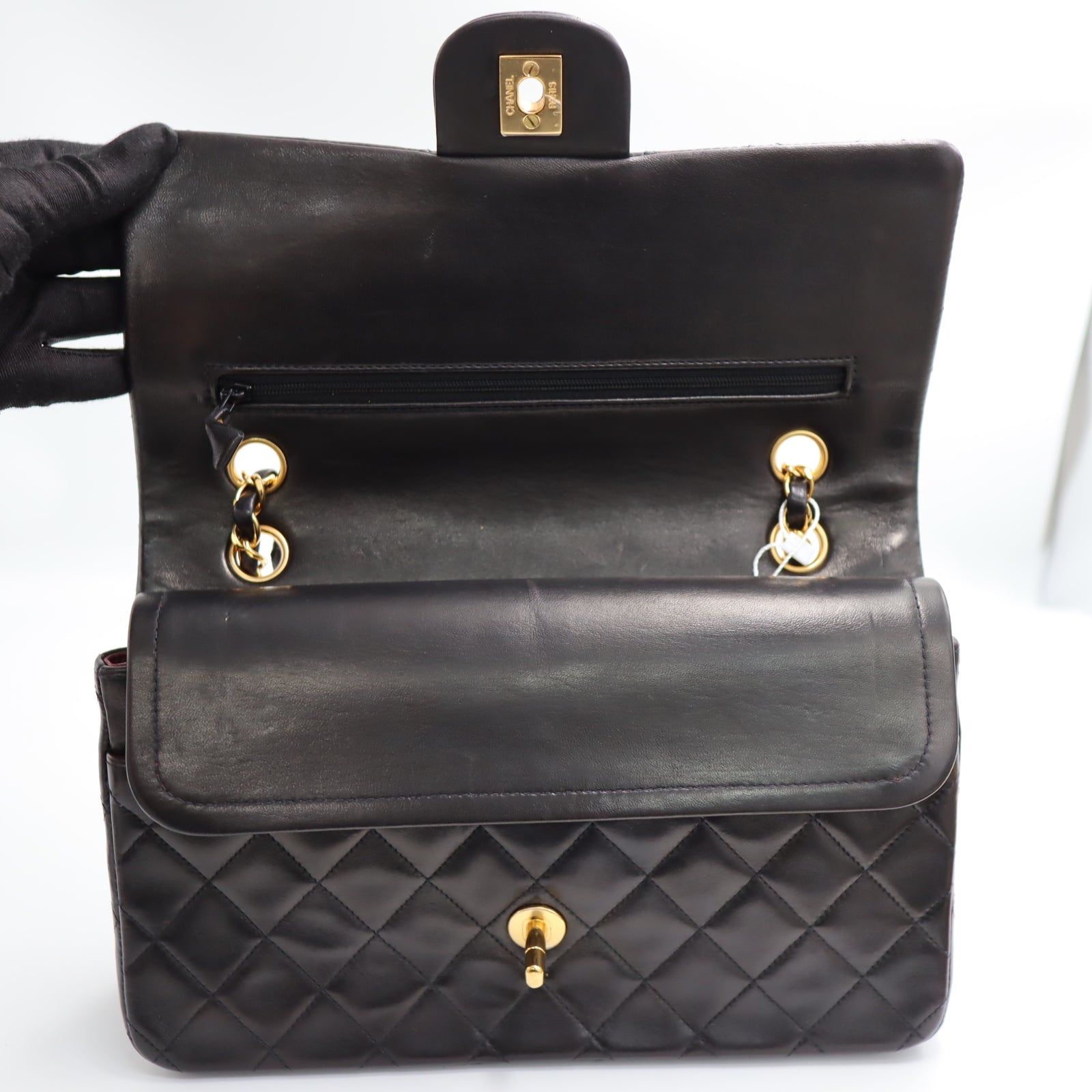 Pre-Owned #R7082502 CHANEL Matelasse Double Flap Chain Shoulder Bag Lambskin Black A01112